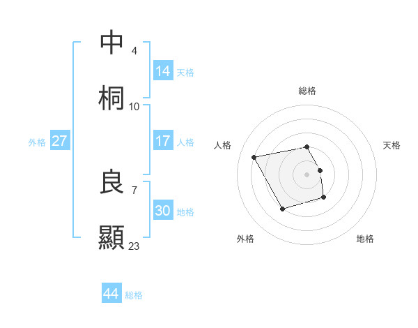 中桐 良顯さんの総格は44画の2点!