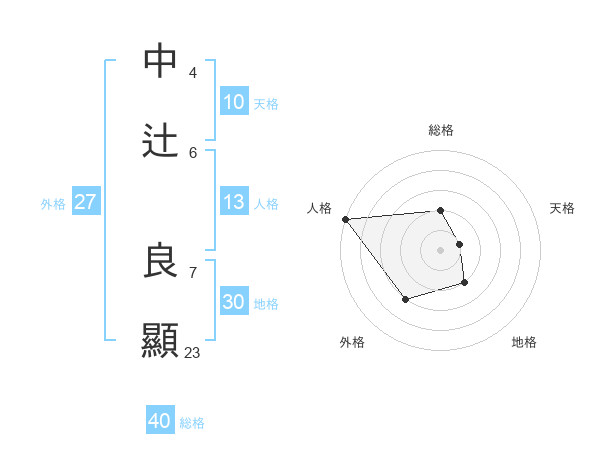 中辻 良顯さんの天格は10画の1点!