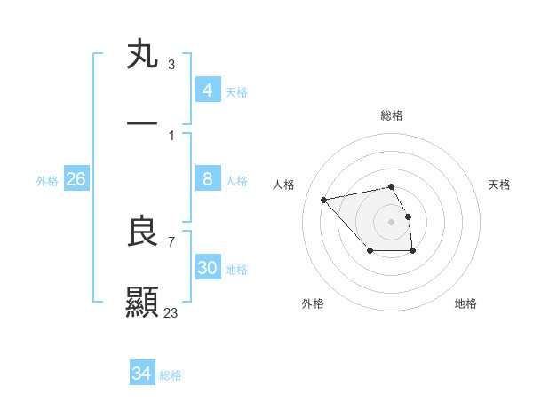 丸一 良顯さんの総格は34画の2点!