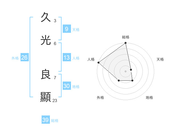久光 良顯さんの総格は39画の5点!