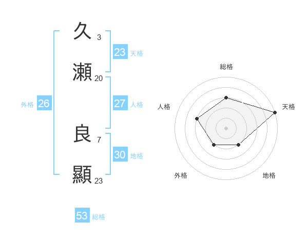 久瀬 良顯さんの総格は53画の3点!