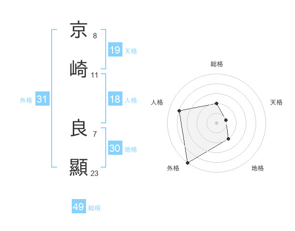 京崎 良顯さんの総格は49画の2点!