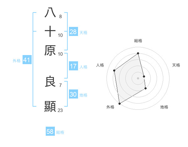 八十原 良顯さんの総格は58画の4点!