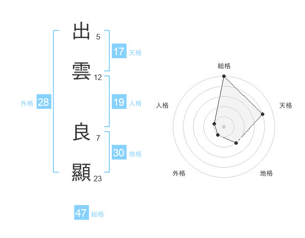 出雲 良顯さんの総格は47画の5点!