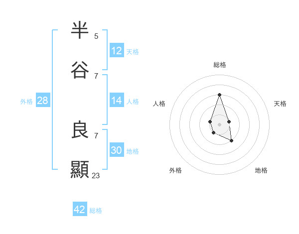 半谷 良顯さんの総格は42画の3点!