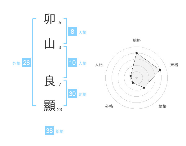 卯山 良顯さんの総格は38画の4点!