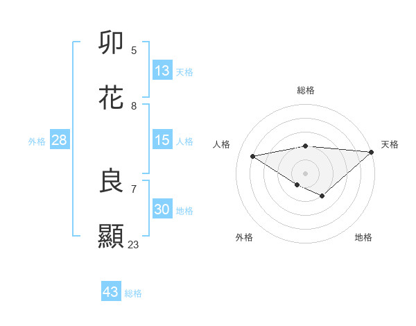 卯花 良顯さんを姓名の画数から五運を鑑定