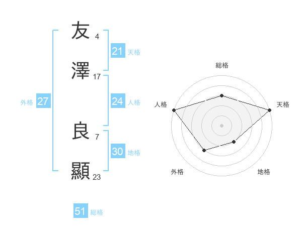 友澤 良顯さんの総格は51画の3点!