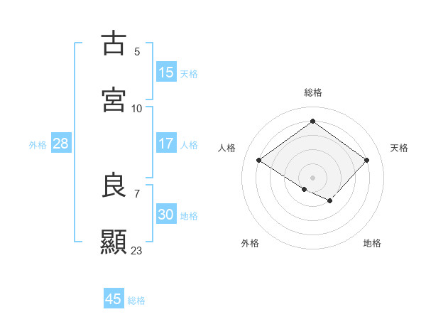 古宮 良顯さんの総格は45画の4点!