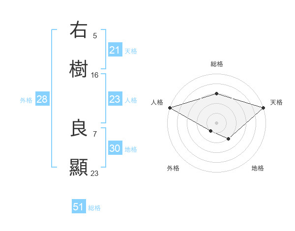 右樹 良顯さんを姓名の画数から五運を鑑定