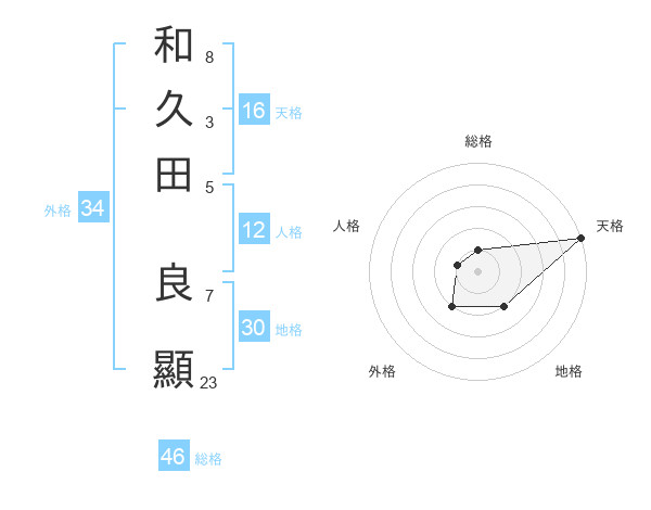 和久田 良顯さんを姓名の画数から五運を鑑定