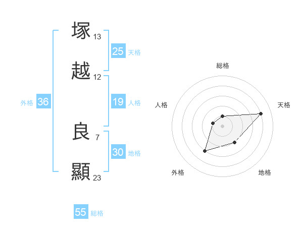 塚越 良顯さんを姓名の画数から五運を鑑定