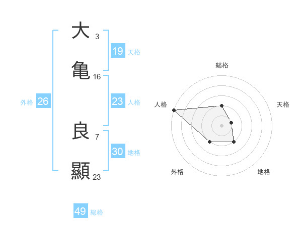 大亀 良顯さんの総格は49画の2点!