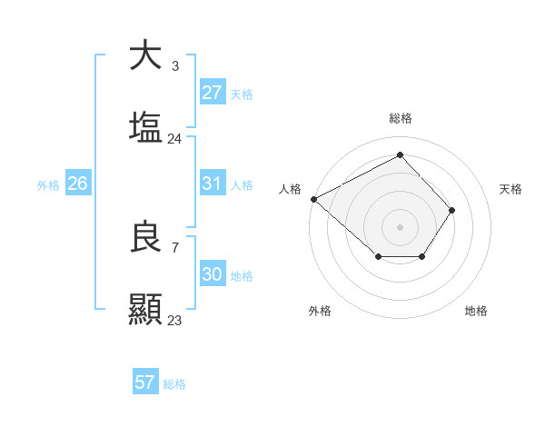 大塩 良顯さんを姓名の画数から五運を鑑定