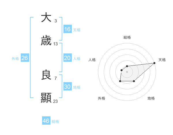 大歳 良顯さんの外格は26画の2点!