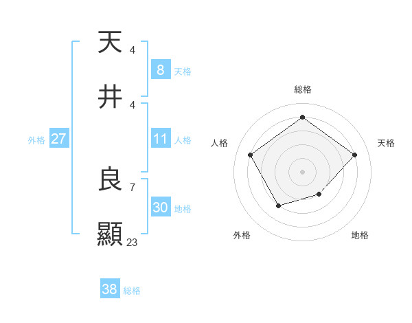 天井 良顯さんの総格は38画の4点!