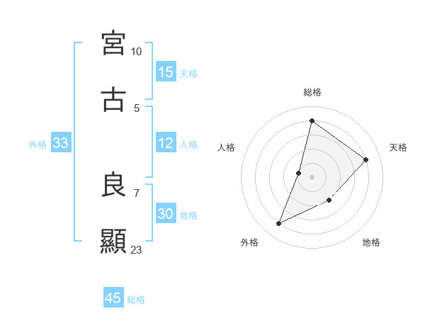 宮古 良顯さんの総格は45画の4点!