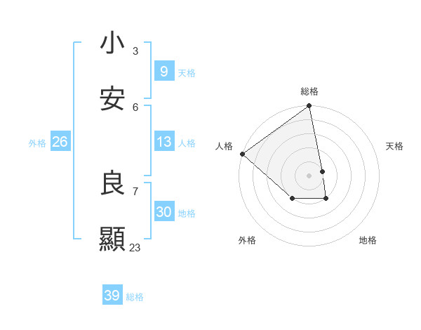 小安 良顯さんの総格は39画の5点!