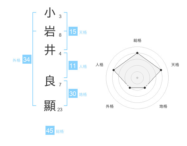 小岩井 良顯さんを姓名の画数から五運を鑑定