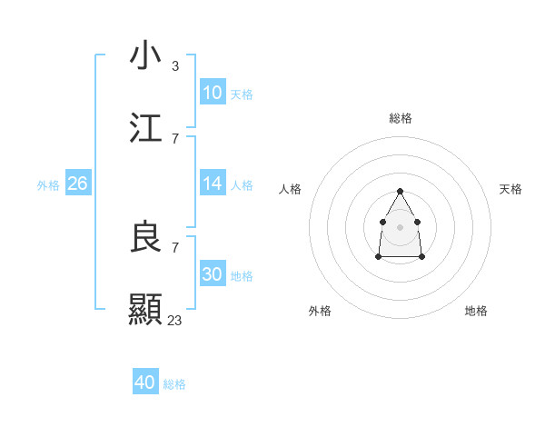 小江 良顯さんの総格は40画の2点!