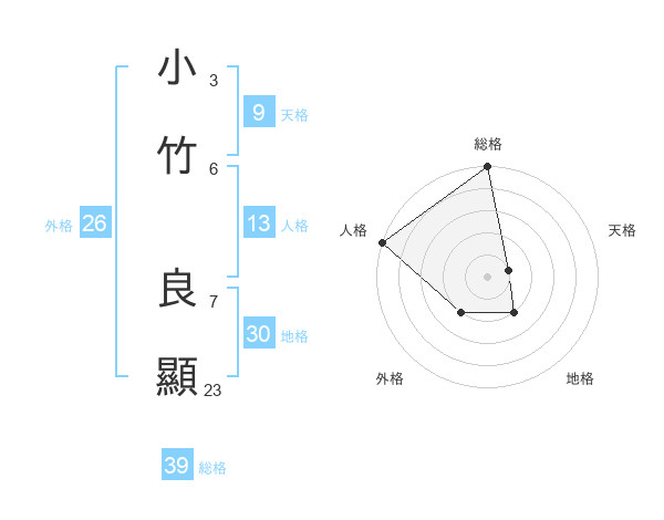小竹 良顯さんの総格は39画の5点!