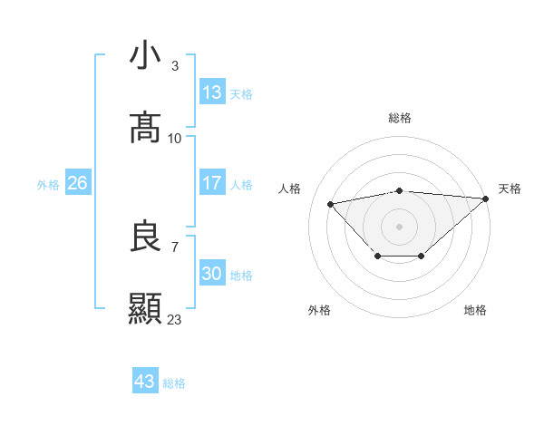 小髙 良顯さんを姓名の画数から五運を鑑定