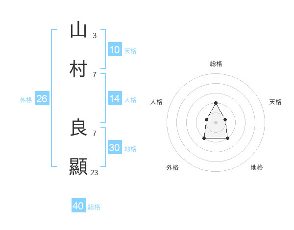 山村 良顯さんの総格は40画の2点!