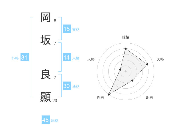 岡坂 良顯さんの総格は45画の4点!