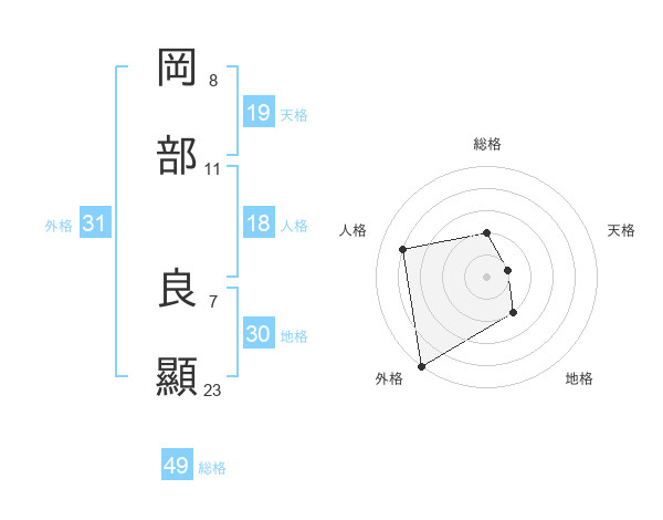 岡部 良顯さんを姓名の画数から五運を鑑定