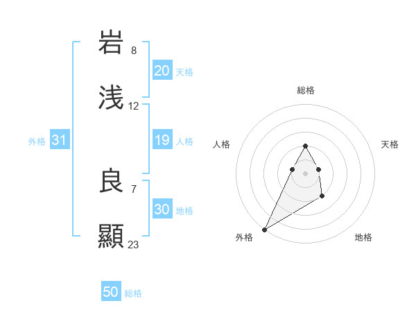 岩浅 良顯さんの総格は50画の2点!