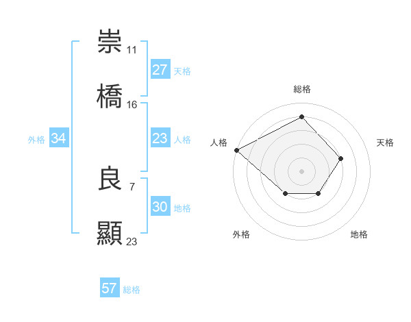 崇橋 良顯さんを姓名の画数から五運を鑑定