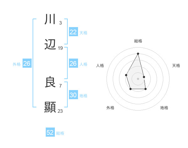 川辺 良顯さんを姓名の画数から五運を鑑定