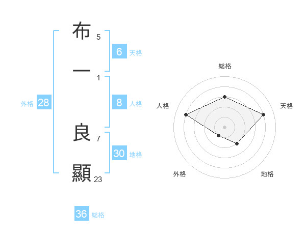 布一 良顯さんの地格は30画の2点!