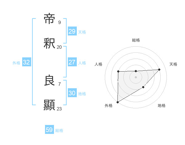 帝釈 良顯さんの天格は29画の4点!