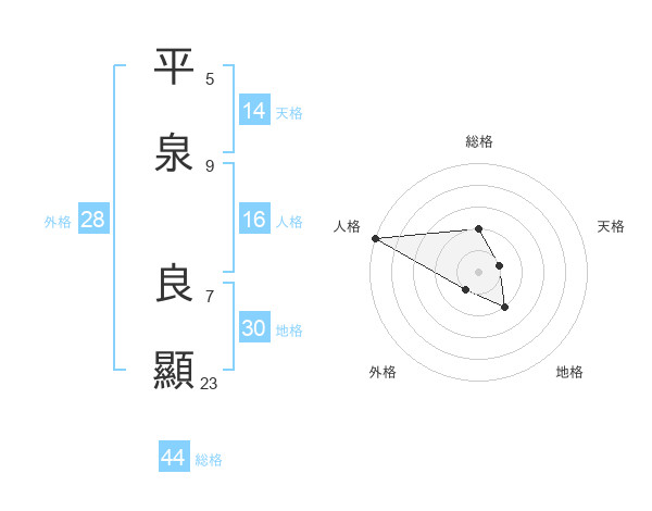 平泉 良顯さんの総格は44画の2点!