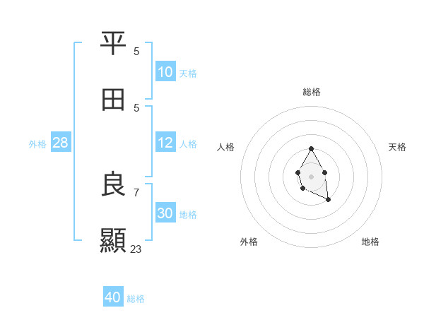 平田 良顯さんの総格は40画の2点!