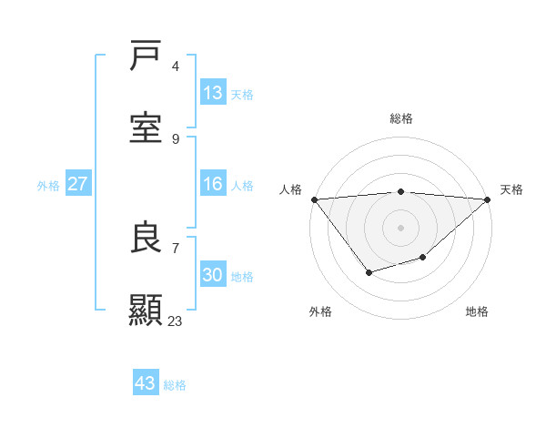 戸室 良顯さんの総格は43画の2点!