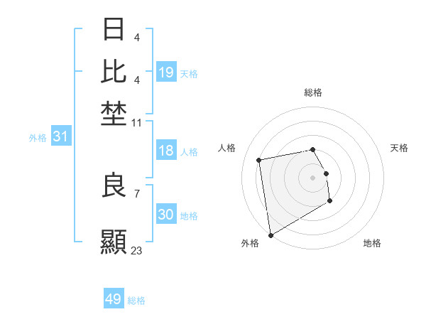 日比埜 良顯さんの外格は31画の5点!