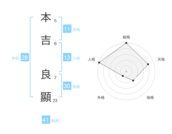 本吉 良顯さんの総格は41画の5点!
