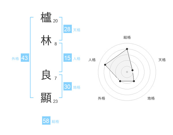 櫨林 良顯さんの総格は58画の4点!