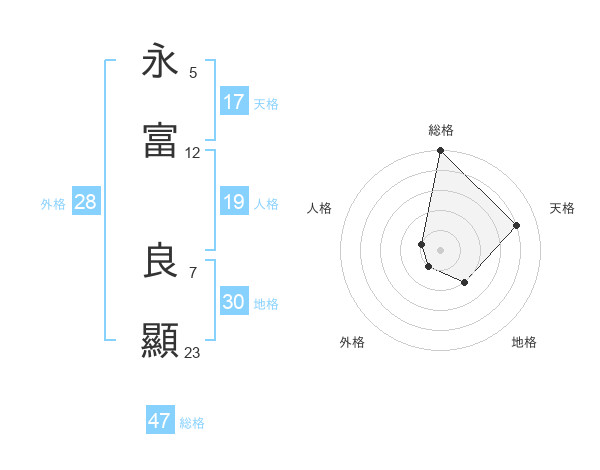 永富 良顯さんの総格は47画の5点!