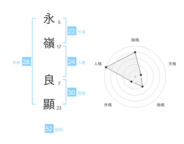 永嶺 良顯さんの総格は52画の4点!