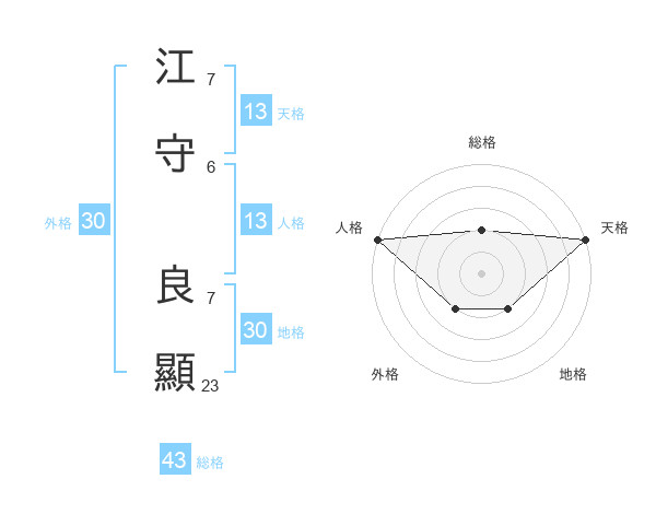 江守 良顯さんの天格は13画の5点!