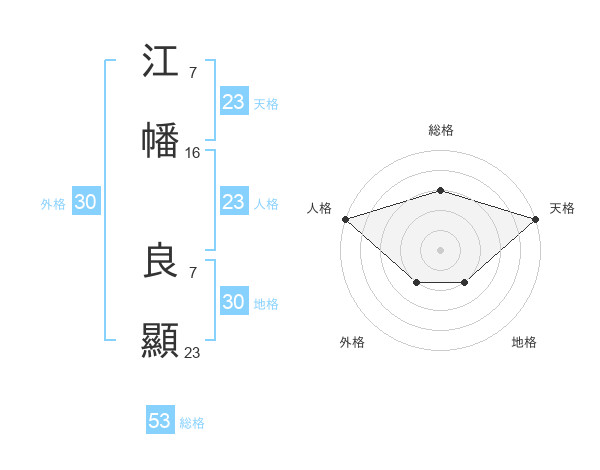 江幡 良顯さんの総格は53画の3点!