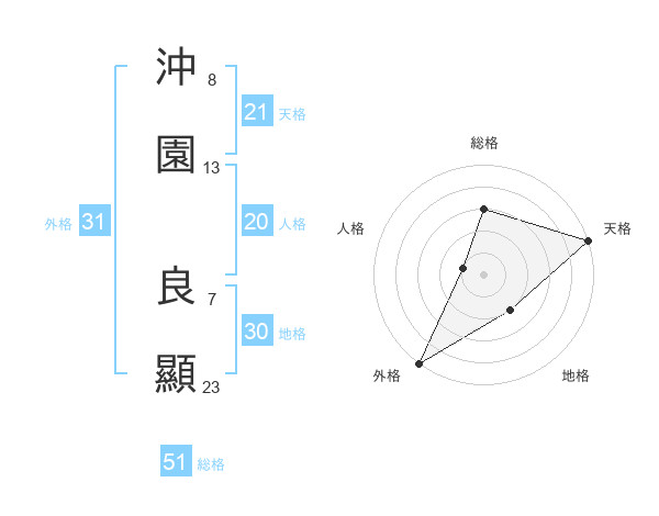 沖園 良顯さんを姓名の画数から五運を鑑定