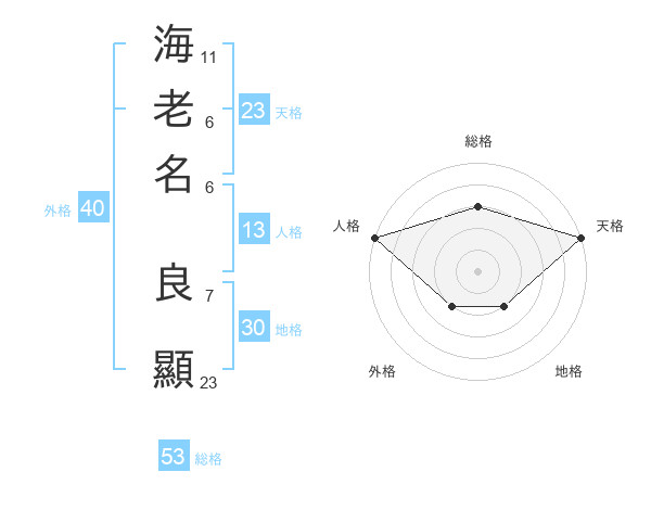 海老名 良顯さんの総格は53画の3点!