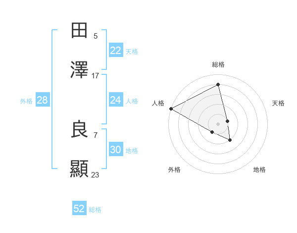 田澤 良顯さんを姓名の画数から五運を鑑定