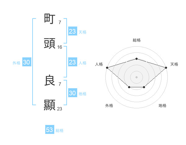 町頭 良顯さんの総格は53画の3点!