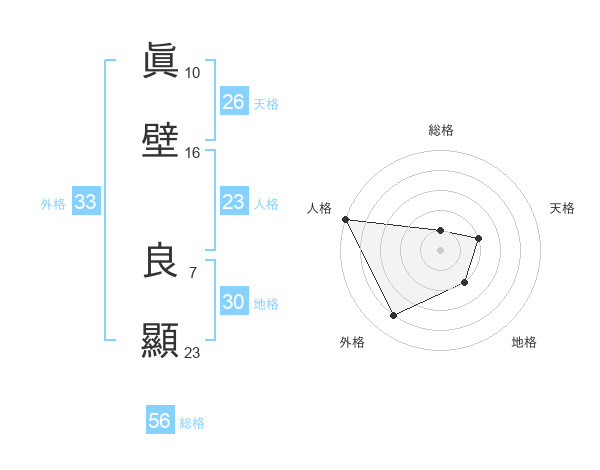 眞壁 良顯さんの総格は56画の1点!