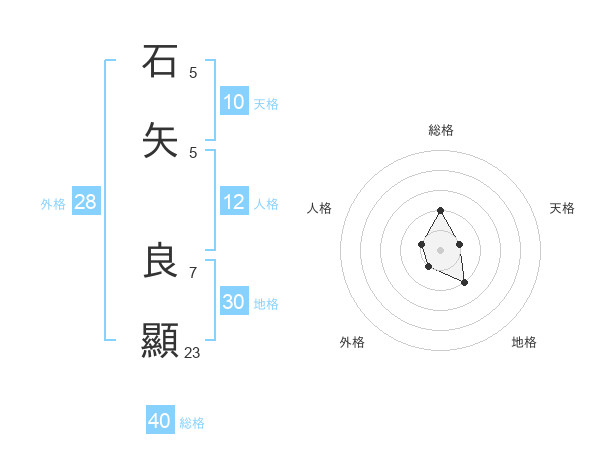石矢 良顯さんの総格は40画の2点!